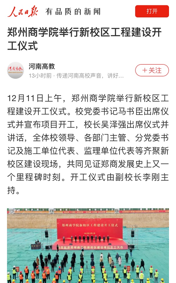 12月15日,人民日报客户端以“冰球突破mg正规官网举行新校区工程建设开工仪式”为题,报道冰球官网新校区建设项目开工仪式。现将原文摘录如下:
