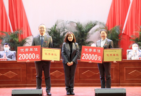 会上,校长助理刘升阳宣读《冰球突破mg正规官网关于表彰2022-2023学年第一学期优秀单位和优秀教职员工的决定》,与会校领导分别为优秀单位和优秀教职员工颁奖。