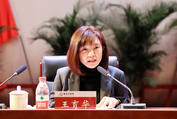 王育华董事长发表题为《同向同行 共赴新程》的讲话。她首先代表董事会向全体同仁表示衷心的感谢与诚挚的问候。董事长指出,无声的战“疫”让我们付出了艰辛,收获了成长,淬炼了意志,更加坚定了发展的信心。上学期,教育教学改革纵深推进,学生管理特色日益凸显,招生就业工作提质增效,新校区建设顺利开工……学校发展继续保持向上的态势。新的一年,将进入后疫情时代,“十四五”规划业已发展过半,我们将迎来新的发展视窗机遇期、关键期,希望大家保持积极健康的心态,聚焦学校事业,关注学生发展,重点做好审核评估筹备、硕士点培育建设、新校区建设等工作,确保如期完成各项目标任务,推进学校稳定、健康发展。