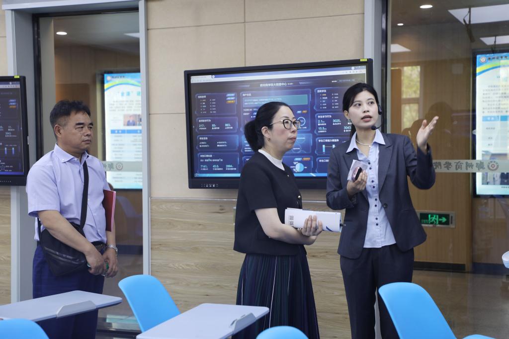会后,姜建铃副局长一行深入到冰球官网图书馆、商务外语实验中心等处实地调研,详细了解冰球官网办学特色、育人环境和校园建设等情况。