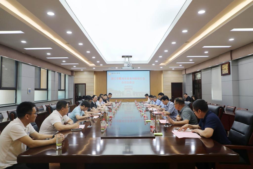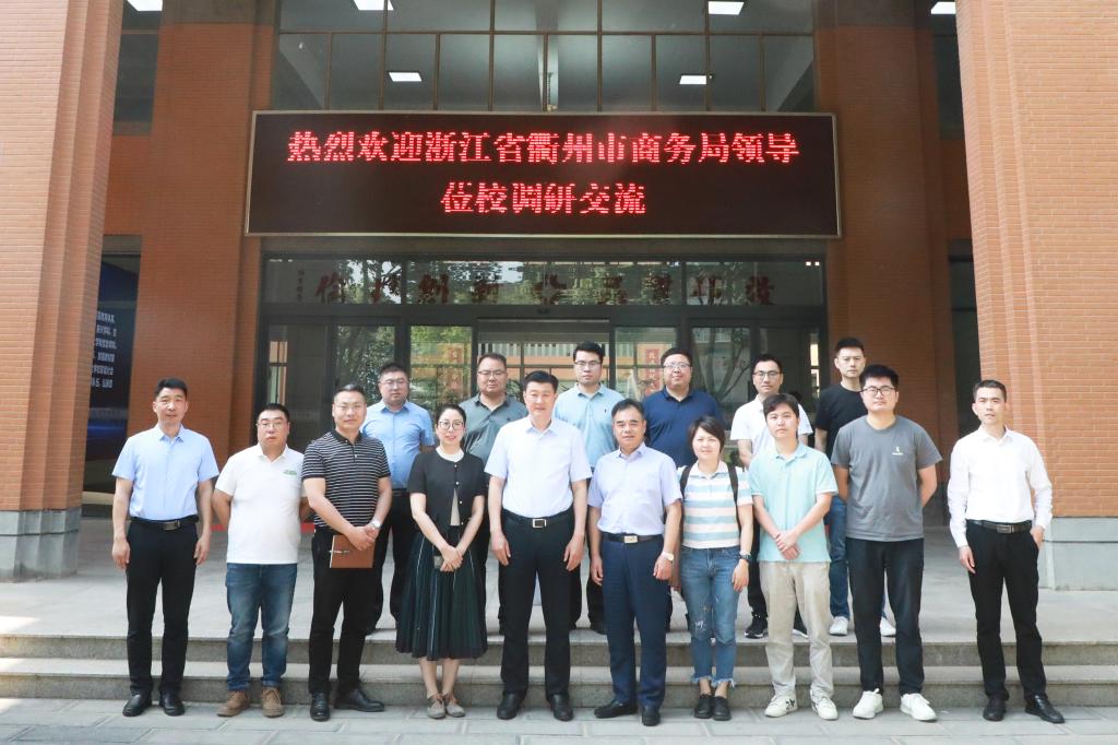 5月17日,浙江省衢州市商务局党组成员、副局长姜建铃带领商务局相关部门负责人、企业代表一行8人莅临冰球官网调研交流。校长吴泽强带领部分校领导和部门负责人进行接待会谈。