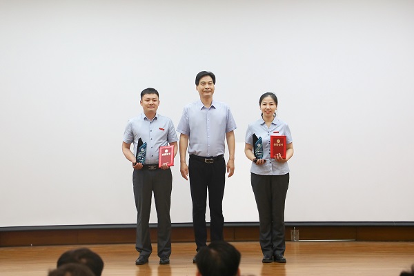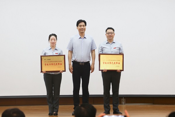 党委书记吴建军为“学生工作先进单位”“共青团工作先进工作者”颁奖