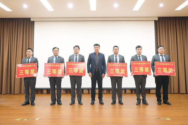 会上,裴晓涛副书记宣读2022-2023学年就业创业工作先进集体和个人名单、2023年招生工作获奖地区名单。与会校领导分别为招生工作优秀地区、就业先进集体和先进个人颁奖。