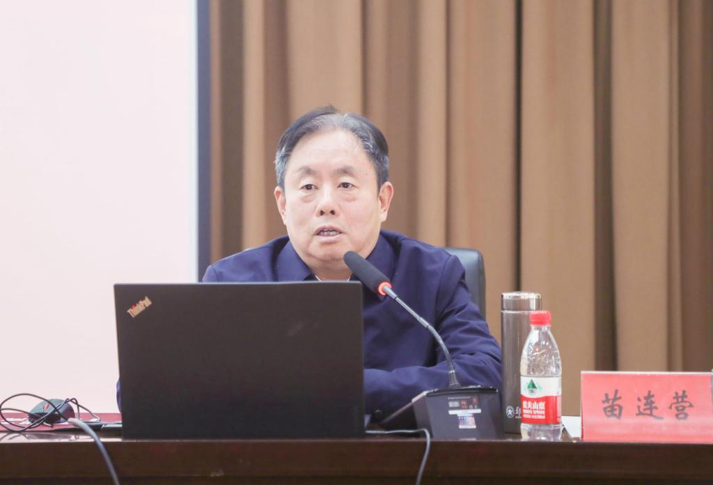 11月9日下午,冰球官网举行“百名法学家百场报告会”法治宣讲暨党委理论学习中心组(扩大)学习报告会,特邀郑州大学法学院院长、博士生导师苗连营教授莅校作题为“深入学习贯彻习近平法治思想,开启新时代法治中国建设新征程”的宣讲报告。全体校领导、校党委理论学习中心组成员、学校依法治校领导小组成员和各单位主管、副主管、全体辅导员等参加报告会。报告会由党委副书记兼纪委书记裴晓涛主持。