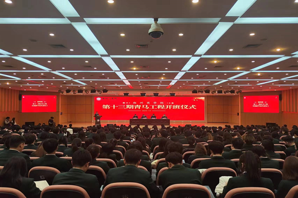 开班仪式在奏唱《国歌》中拉开帷幕。经过学院推荐、组织考核等方式,100名优秀青年骨干成为第十三期“青马工程”学员。