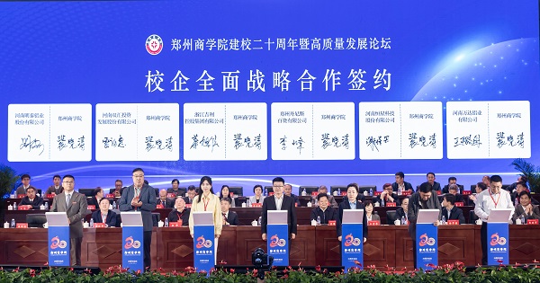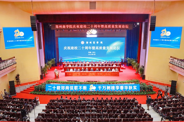 忆往昔勤耕不辍,展未来芳华正茂。庆祝建校20周年暨高质量发展论坛既是学校总结成绩、彰显内涵的新机遇,也是承前启后、继往开来的新起点,更是砥砺初心、凝聚合力的新契机。跨越第一个二十年,郑商人备受鼓舞、信心满怀;面向下一个二十年,郑商人意气风发、斗志昂扬。学校将以此次大会为契机,坚持以习近平新时代中国特色社会主义思想为指导,全面落实立德树人根本任务,为党育人、为国育才,凝心聚力、接续奋斗,为建设教育强国、教育强省贡献新的更大的力量。
