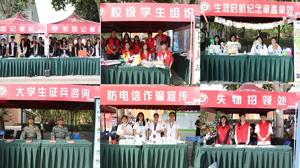 校内还设置了综合服务台、招办咨询台、绿色通道办理处、新生服务站、医疗服务站、家长休息区、大学生医保咨询、校园记者站、新生梦想秀等服务站点,开展资助、防诈、医疗、心理健康咨询等系列暖心服务项目,为新生和家长提供了极大便利。