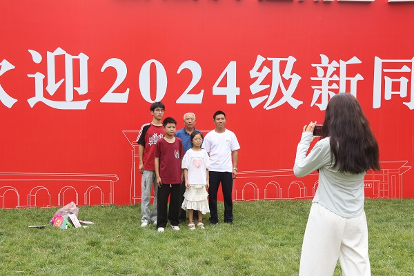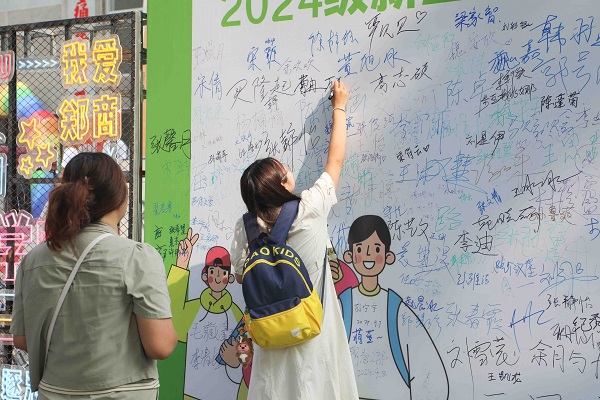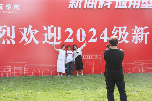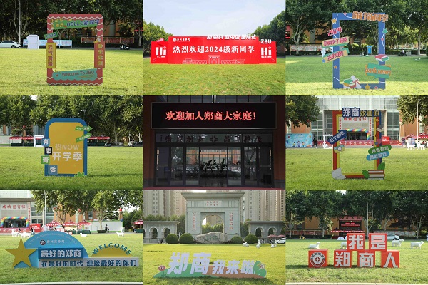 踏入郑商校园,“热烈欢迎2024级新同学”的巨大喷绘矗立在中心广场,“我是郑商人”“欢迎你,郑商‘新’上人”“你好,新同学”……各类宣传牌创意满分,块块展板、条条标语皆是喜气洋洋的迎新氛围。创意合影墙上,既有殷殷的关爱与嘱托,也有展望未来的期盼,不少新生和亲友拍照打卡,纪念成为郑商人的第一天。