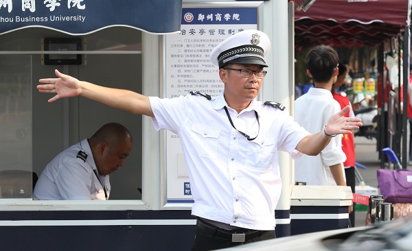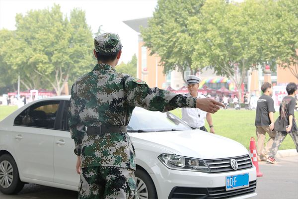 交警、校园安保人员、师生志愿者助力校园内外交通疏导,校园安全巡逻车加紧巡视疏通,确保校园交通安全、流畅。“新生和家长入校最先看到就是我们,是郑商的第一面形象,我们一定要把热情带给大家。”今年是安保人员张红峰第8次参加迎新工作,他早上6点带领安保队伍到达集合地点,进行车牌登记、及时疏通车辆,让新生和家长无忧入学,快速入校。