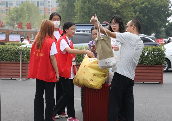 考虑到天津到校比较远,会计学院新生吕欣蓉一家人决定提前出发,吕爸爸说:“我们一路自驾,中途参观了几个河南景点,文化很厚重有底蕴,希望能帮她适应下不一样的环境,这也是我们最担心的地方。”有趣的河南方言、热心的老师同学、优美的校园环境让他们渐渐放下担忧,进校后的一幕幕都被吕先生看在眼里:“我觉得这是一所很有温度的学校,安排得很细致,老师同学很热情,也非常有精气神,希望在老师和同学的帮助下,孩子能尽快融入集体,投入到新的生活中。”