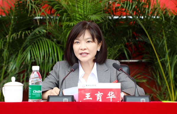 最后,董事长王育华讲话。她向新加入郑商的同学们表示欢迎,向为军训工作付出汗水的教官和老师们表示感谢,向在军训中取得优异成绩的先进集体和个人表示祝贺。她表示,大学不仅承载着知识的重量,更满载着美好的青春时光和成长的奋斗故事。郑商因为大家的加入,翻开了精彩的一页;同学们站在新的起点,也即将开启一段美好的旅程。