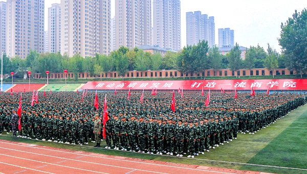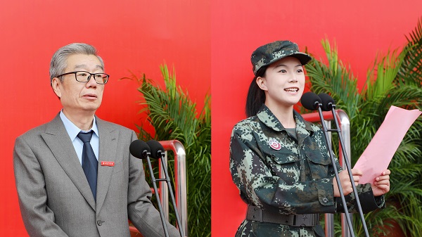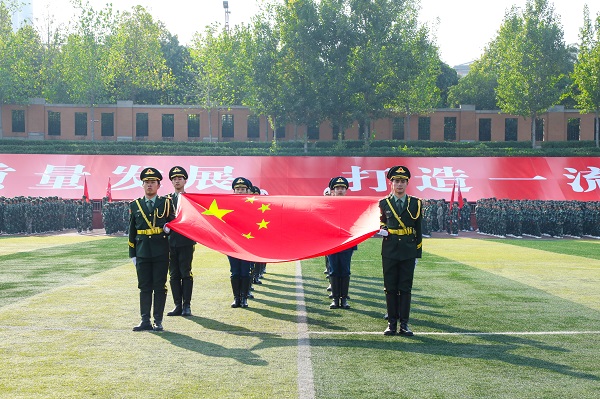 校长吴泽强在讲话中向圆满完成军训任务的同学们表示祝贺,向科学施训的教官和全程陪伴的老师们表示感谢。他从“栉风沐雨的郑商镌刻着教育报国的拳拳深情”“昂扬奋进的郑商践行着以生为本的教育理念”“继往开来的郑商赓续着育才达人的教育使命”三个方面向同学们郑重介绍了学校。
