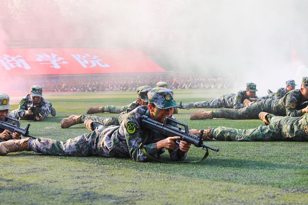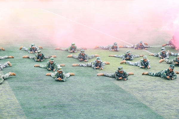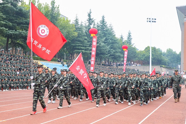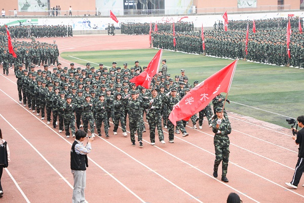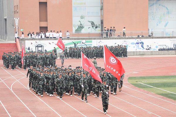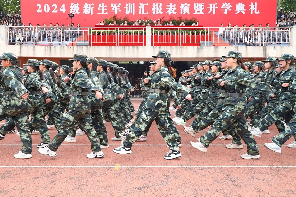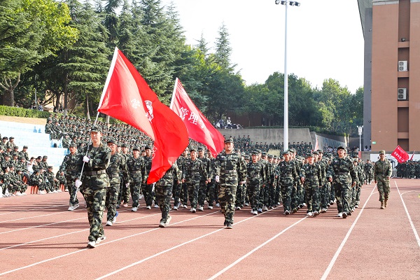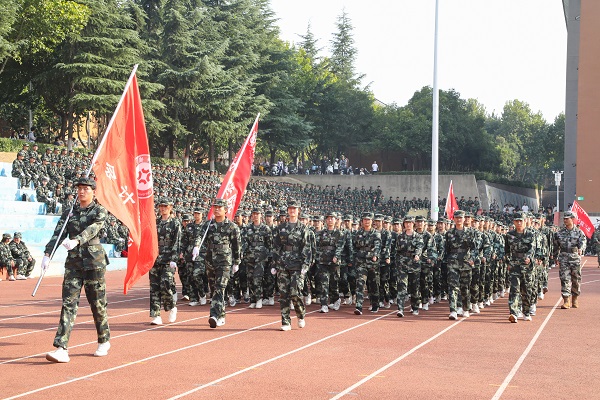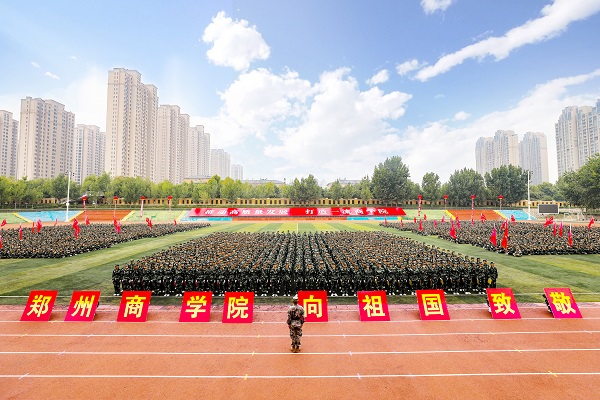 伴随着激昂的《中国人民解放军进行曲》,新生分列式表演正式开始。各受训方阵依次通过主席台,他们的身姿挺拔如松、刚直似桦、沉稳从容;他们的目光坚毅明亮、炯炯有神、充满朝气;他们的动作刚劲有力、步履铿锵、势不可当;他们的口号响亮激昂、充满激情、声震云霄,充分展示出郑商人的凛凛学风和顽强的意志品质,彰显了新时代大学生爱国荣校的崇高情怀。