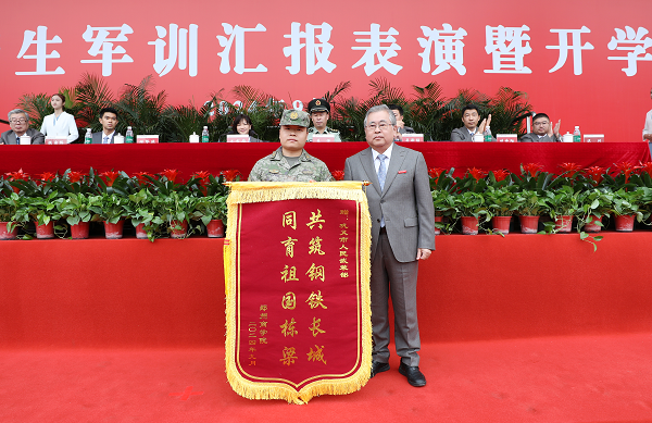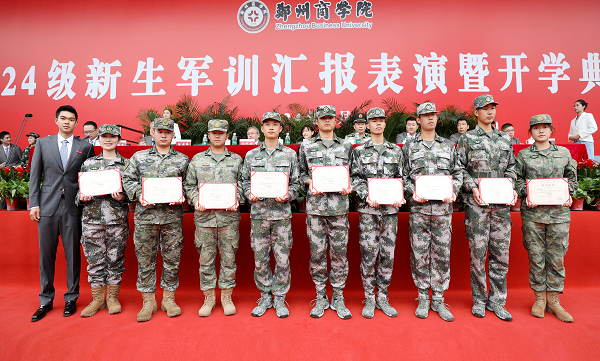 在本次军训中,2024级新生刻苦训练、各连队组织有方,全体教官科学施训,军训成效显著。为表彰先进、树立榜样,巩固军训成果,学校授予管理学院曾雨文等346名同学“优秀学员”荣誉称号;授予管理学院一连等11个连队“先进连队”荣誉称号;授予宁震海等10名老师“优秀指导员”荣誉称号;授予于康等73名教官“优秀教官”荣誉称号;与会领导分别为获奖集体和个人颁奖。