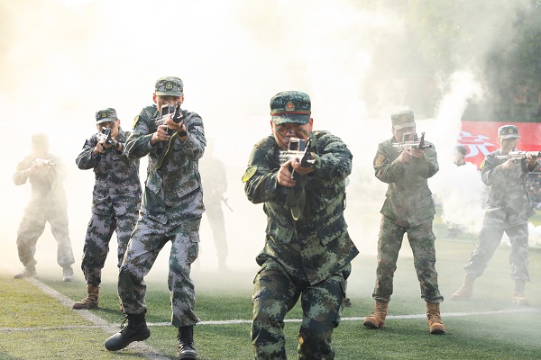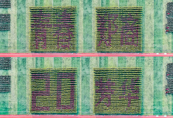 汇报表演中,千余名同学组成数字方阵,他们动作敏捷迅速、干净利落,呐喊声响亮激昂、振奋人心。“10、9、8…3、2、1、0”“盛世中华 75华诞”“青春郑商 20芳华”“勤俭朴实 自力更生”“强国有我 筑梦启航”“冰球突破mg正规官网向祖国致敬”新生们通过举牌变换字体,庆祝新中国75周年华诞并表达对郑商的款款深情。“愿以吾辈之青春,捍卫盛世之中华!”“在青春的校园里,我们漫步在知识的海洋,文化的殿堂,思想的宝库,精神的圣地。”他们通过震撼的口号祝福祖国如日中天,如月之恒;祝愿郑商芳华永驻,硕果累累。棍操表演者们手持长棍,身姿矫健,动作刚劲有力,齐整如一,手中的棍棒上下翻飞,发出阵阵破空之声。战术动作表演模拟着真实的“战斗”场景,展现出了高超的战术素养和勇敢无畏的精神。