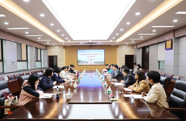 10月21日,上海杉达学院潘慧斌副校长等一行7人莅临冰球官网调研交流工作,校长吴泽强、董事长助理陈宗纬、副校长刘升阳和相关部门负责人进行接待,并在行政楼第一会议室举行交流座谈会。