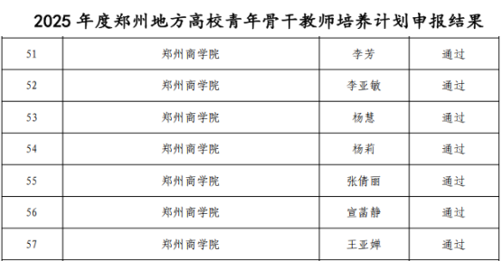 根据《郑州市教育局关于公布2025年度郑州地方高校青年骨干教师培养计划申报结果的通知》,冰球官网李芳等七位教师通过郑州地方高校青年骨干教师培养计划评审。