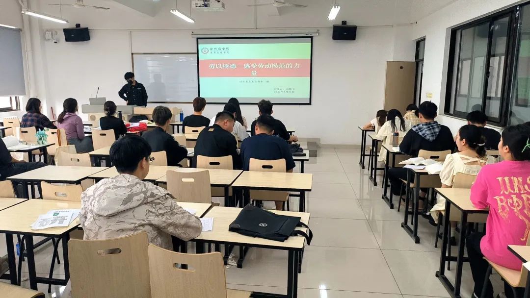 随后,由各班获得“劳动教育先进个人”的同学上台发言,向同学们分享自己对于劳动的看法、在劳动中的收获和成长。最后,辅导员老师向同学们发出“人人向先进学习”的倡议,鼓励同学们用劳动创造幸福、用奋斗书写华章。此次劳动教育主题班会,让同学们进一步认识到了劳动的重要意义,强化了作为青年学子的使命和担当,有力鼓舞了学生在实践中奋斗。