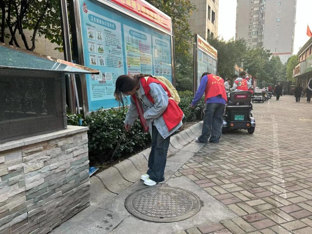 活动中,志愿者们带着扫帚、夹子、垃圾袋等卫生工具对小区进行清洁。志愿者们在清理过程中不忘积极向居民宣传人人参与社区卫生的重要意义,让居民认识到社区的整洁与卫生离不开大家的努力,引导居民更深度的参与社区卫生维护。随后,在文明交通活动中,志愿者穿戴红马甲,手持交通劝导旗,对车辆和行人进行劝导在道路上要彼此文明礼让,尊重他人的交通权益。礼让行人,让别车先行,营造了良好的交通氛围。