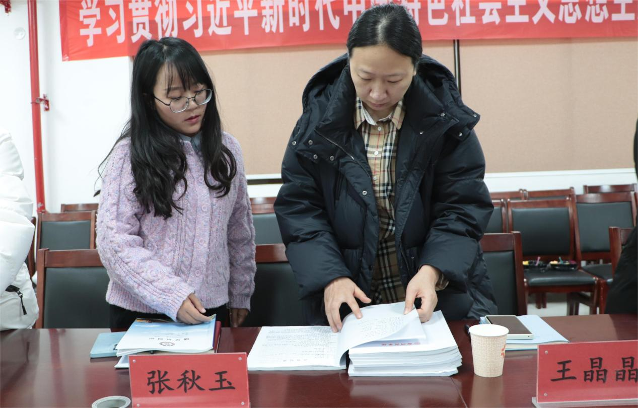 会后,朱宏东书记、王晶晶科长查看了建工学院辅导员工作资料。