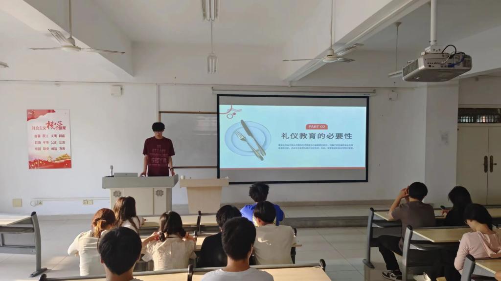近日,我院举办了一场“一饭一食有礼仪,一举一止皆文明”主题的餐厅礼仪教育宣讲会。此次宣讲会旨在提高学生的文明素养,弘扬中华优秀传统文化,营造和谐、文明的校园氛围。