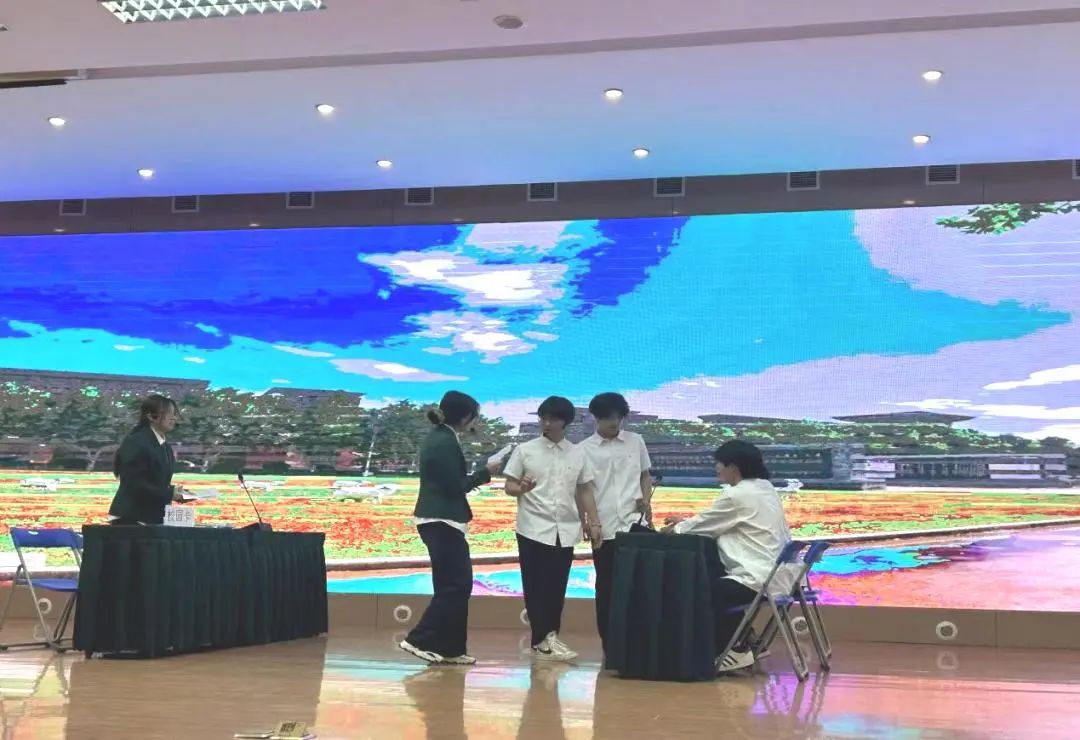 经过复赛的激烈角逐,我院参赛队伍凭借自身突出的礼仪素养冲进了决赛。进入决赛后的六支队伍按照抽签顺序依次上台进行情景演绎。各队伍演员穿着得体、气质优雅地走上舞台,分别扮演着各种角色,如面试官、教师、学生等。无论哪一个场景,都用清晰的语言表达了自己的观点,向观众传达尊重他人、避免冲突和礼貌待人等知识礼仪,赢得阵阵掌声。