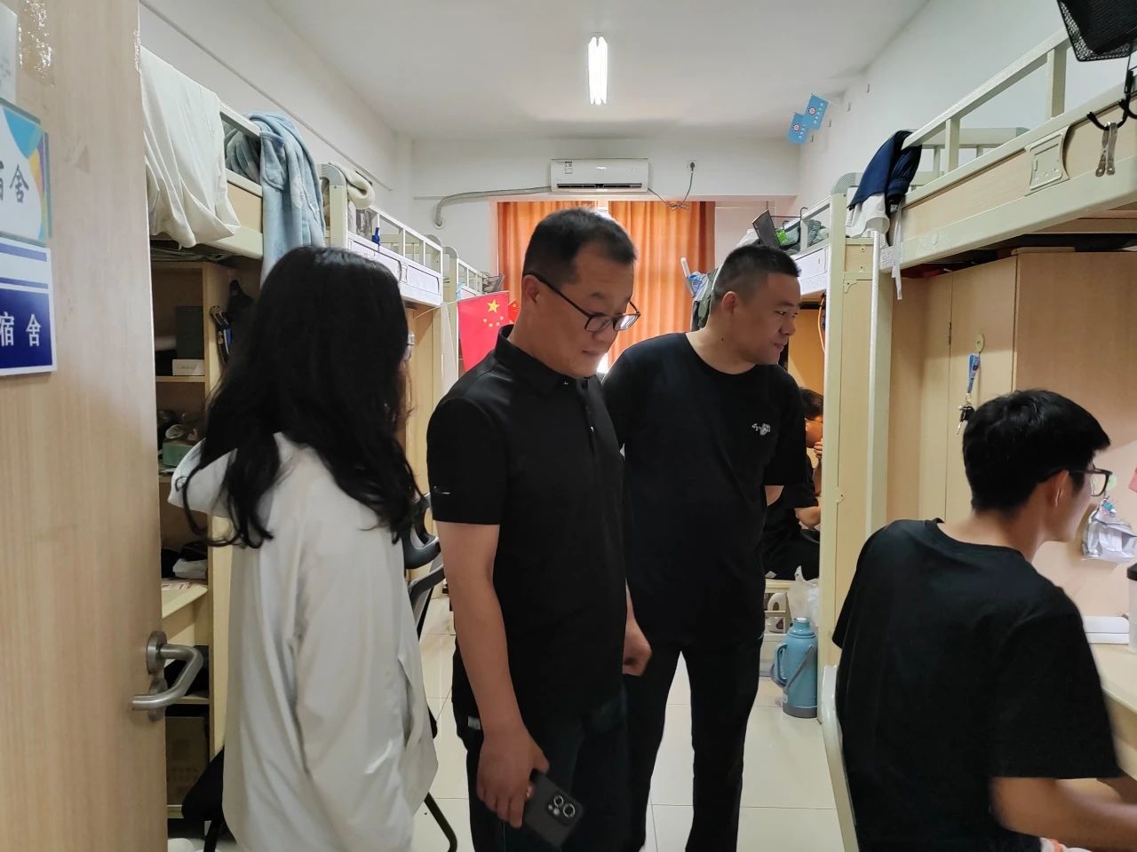 在检查过程中,朱书记对28号楼宿舍出现的个别寝室内务较差、离开宿舍不锁门等问题提出整改要求,引导同学们养成良好的学习和生活习惯。辅导员老师们走访宿舍,对宿舍内务和安全问题进行了排查,督促学生对存在的问题进行整改,提醒同学们注意开窗通风,不要在宿舍内饮酒,保持宿舍干净整洁,注意用电安全。