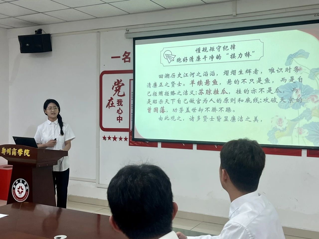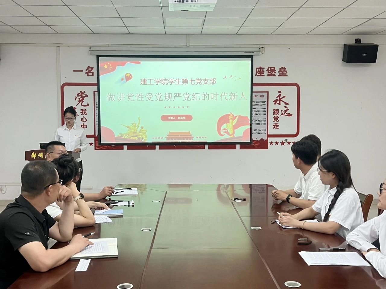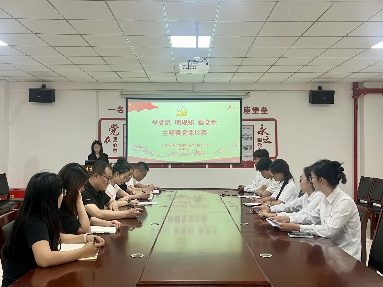 为深入学习贯彻党的二十大精神,推动习近平新时代中国特色社会主义思想深入人心,在全院上下营造学纪、知纪、明纪、守纪的浓厚氛围,5月24日中午,建工学院在亚泽楼会议室举办“学党纪 明规矩 强党性”主题微党课大赛。建工学院党委书记朱宏东、各学生党支部书记出席比赛,大赛由建工学院党委组织委员康雅丹主持。