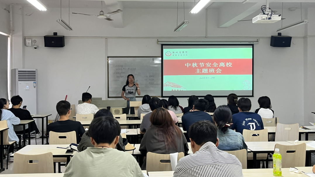 为积极响应校园文化建设的号召,弘扬中华民族优秀传统文化,加强同学们的假期安全意识,确保每位学子度过一个既温馨又安全的中秋节,9 月 14 日,建工学院组织开展中秋假期安全主题班会,班会由各班辅导员老师主持,我院全体学生参会。
