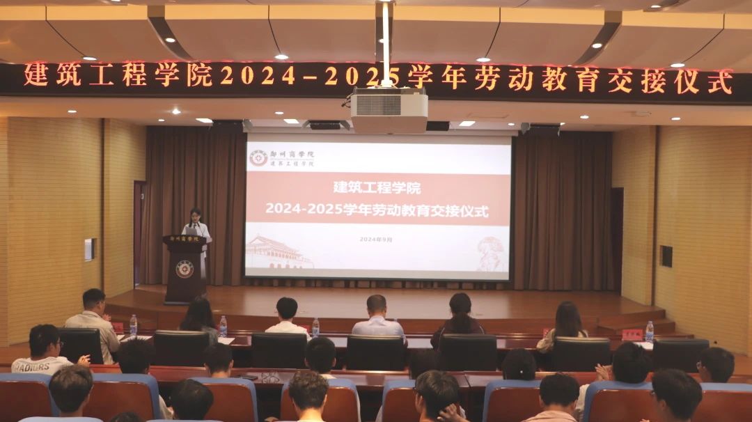 为扎实做好新学年劳动教育工作,引导24级新生树立正确的劳动观念、理解劳动的意义,培养良好的劳动习惯,9月27日上午,建工学院在图书馆五楼报告厅隆重举行2024—2025学年劳动教育启动暨交接仪式。我院党委书记朱宏东、学务处劳卫科科长魏瑶、劳卫科林琳老师、劳动教育专项负责人张愉愉老师、新生辅导员以及2024级新生代表参加。