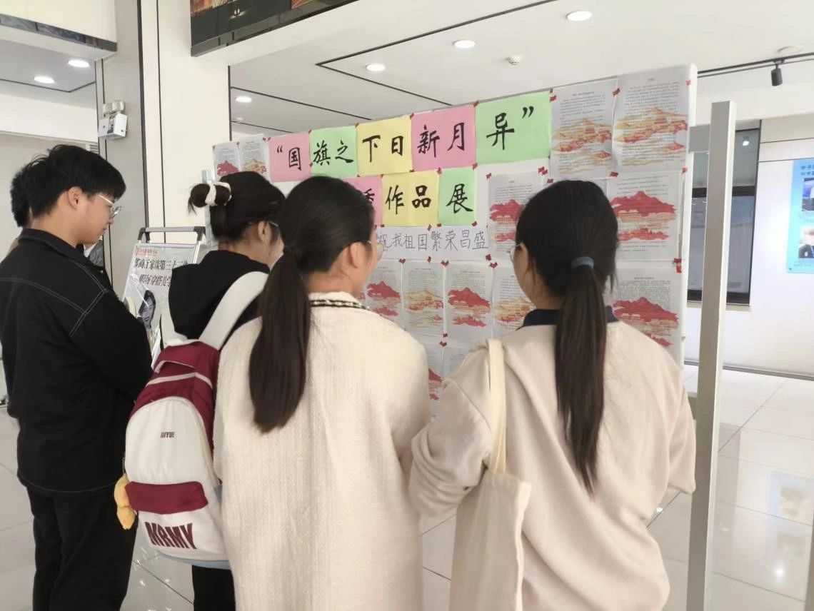 国旗招展,诗意流淌。这场作品展如乐章回荡,满溢书香与诗意。学生们在国旗辉映下,以诗意润心,以书香致远,为祖国添砖加瓦。