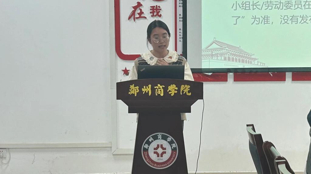 最后,朱书记作总结:一是同学们要认识到劳动教育对于大学生综合素质提升的重要意义;二是希望各班劳动委员要履职尽责,发挥好桥梁纽带作用;三是希望同学们树立集体荣誉感,共同做好劳动教育工作。