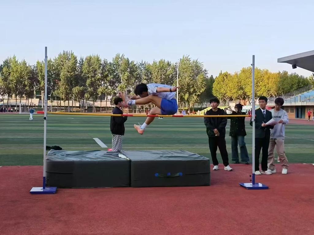 助跑快速,踏板有力,腾空而起,似飞鸟翱翔。空中姿态优美,落地稳健,用距离丈量梦想,展现青春活力与挑战精神。