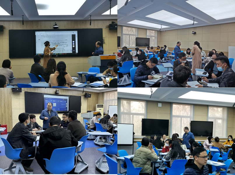 林旺教授从理念、平台、实践三个方面展开,分别阐释了教学设计的一致性原则、教学设计的核心要素、不同类型内容的教学策略、表现型目标与评价。林教授与在场教师们进行现场互动,现场示范如何在教学过程中与学生进行高效互动,活跃课堂氛围;以实际案例引导教师积极思考如何让课堂信息化推动客养教学革命,如何利用平台助力课堂信息化教学改革,如何才能做好混合式教学。在工作坊实操环节,林旺教授将研修教师分为五个学习小组,共同进行了混合式教学的设计、实施与评价演练。研修教师在工作坊过程中展开了积极互动,并就基于“学习通”的混合式教学设计环节中的实践问题与林教授进行了热烈的讨论。