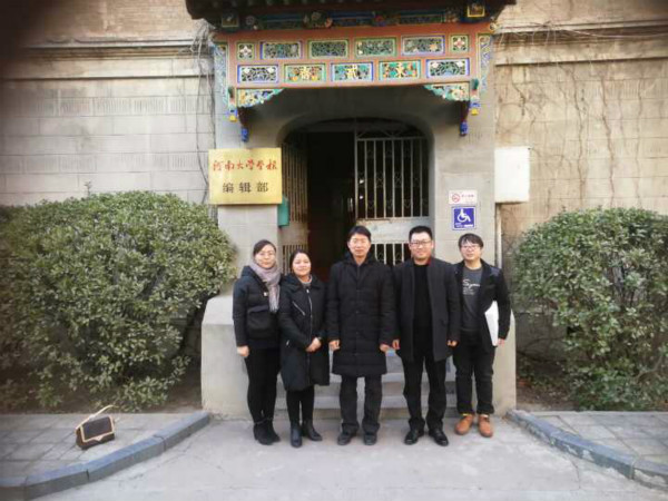 1月31日,科研处处长王松、会计系主任董红杰、会计系书记闫琰及科研处王忠田赴河南大学学报编辑部参观交流,并重点拜访了河南大学学报主编乔家君教授,乔教授现为我院区域经济研究中心主任,主抓我院区域经济研究中心的全面工作。