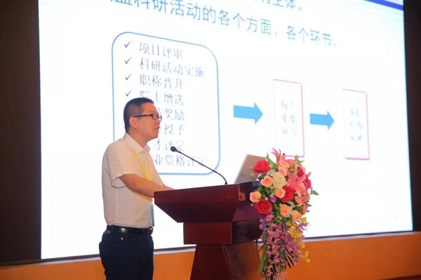 科技部诚信办项目组专家赵勇主任以“双一流建设背景下科研人员的差异化评价方法与实践”为题从政策背景、科研人员评价的国际趋势、科研人员的差异化评价方法、实践探索四个方面对双一流建设背景下科研人员的差异化评价方法与实践进行了分享。