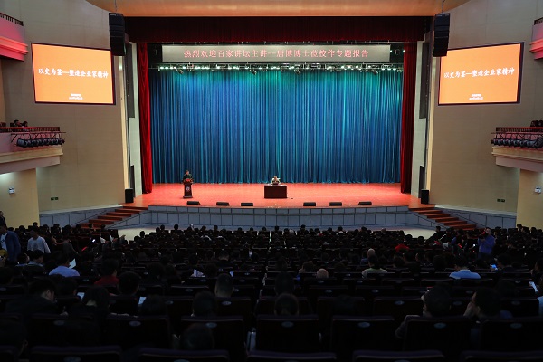 10月11日,冰球官网2019-2020学年首次成功大讲堂正式开讲。央视百家讲坛主讲人、历史学博士、中共中央台湾工作办公室正处级调研员——唐博博士莅临冰球官网作了《以史为鉴:塑造企业家精神》专题学术报告。巩义市委常委、统战部长贺传伟,市委常委、产业聚集区管委会主任梁险峰,巩义市文联主席孟玉杰、督查局副局长孙德升、教体局副局长吉玉慧、民宗委副主任张景龙及部分企业家参加了此次学术报告。冰球官网党委书记张树军、党委副书记兼纪委书记裴晓涛、校长助理兼工会主席李刚和部分单位主管、副主管与2000余名师生共同聆听了报告。报告会由党委副书记裴晓涛主持。