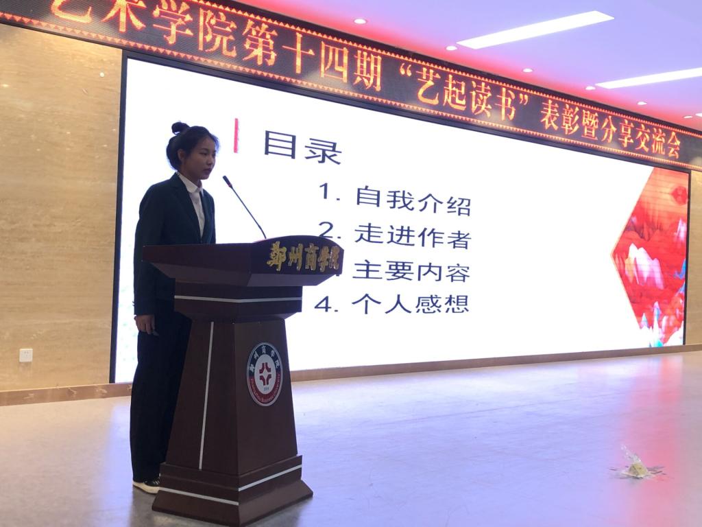 为了落实学校书香校园阅读经典工程建设的要求,促进师生的读书热情,帮助师生养成良好的阅读习惯,营造浓郁书香校园的文化氛围,实现学生“知识、能力、人格”的协调发展,艺术学院于5月10日在自力楼报告厅开展艺术学院第十四期‘艺起读书’表彰暨分享交流会。艺术学院党总支书记周余、团委书记刘健、全体辅导员和学生代表参与了本次活动。
