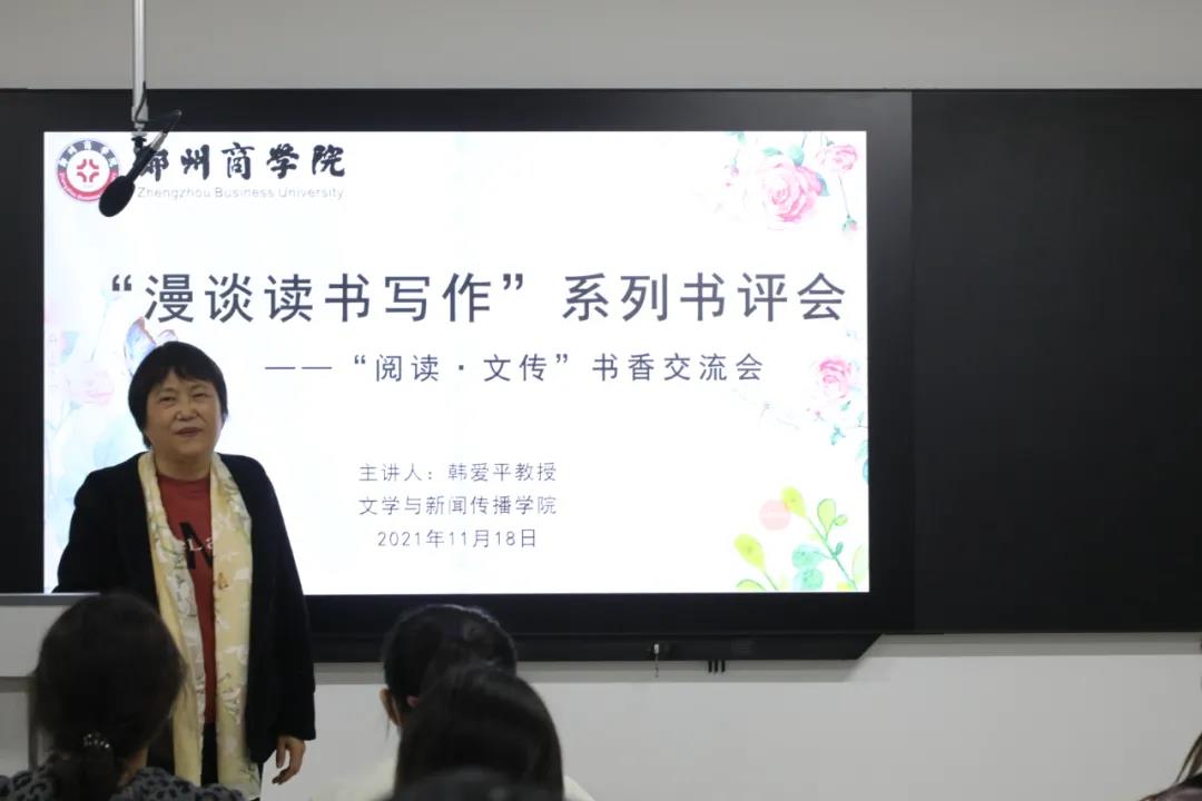 11月18日,文传学院开展了“漫谈读书写作”主题书香交流会。本次交流会特邀新传教研室韩爱平教授主讲。本次交流会的开展,鼓励同学们掘弃浮躁,静下心去领略读书与写作的奥秘,激发了同学们读书、写作的热情。