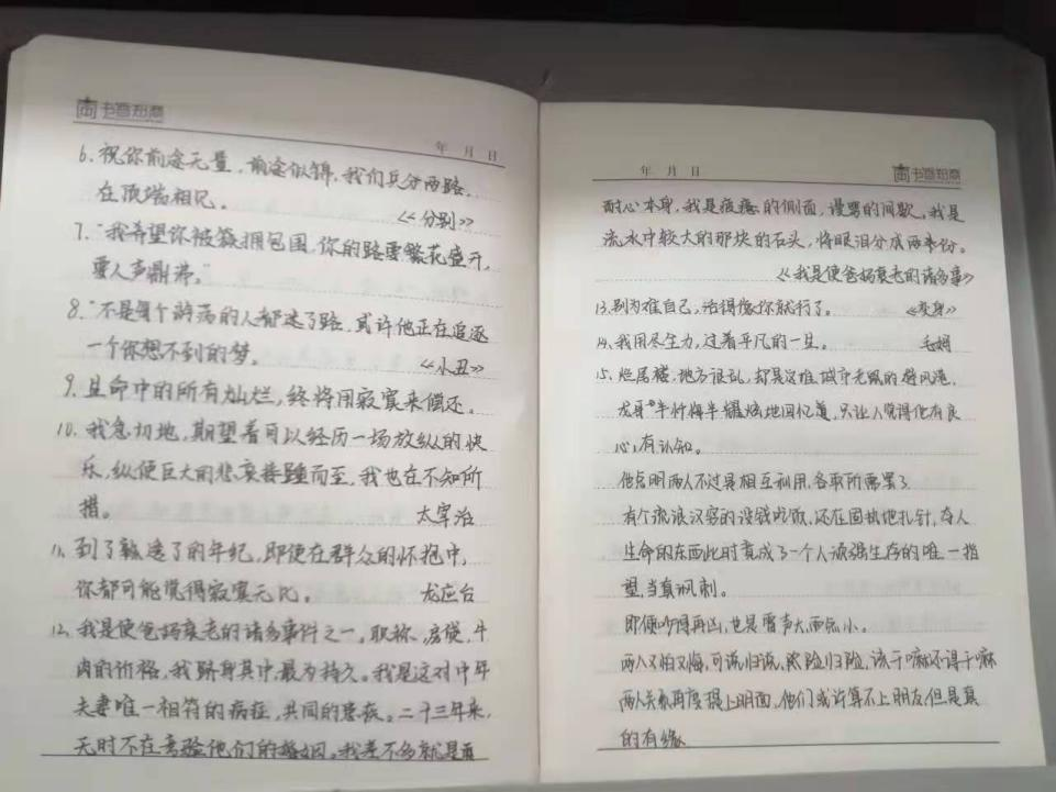 体育部按照学校“全员阅读 共建书香”寒假阅读推广活动要求,组织了“笔墨记书香”经典摘录活动,精选了10篇作品,这些作品全部传承经典著作、弘扬社会正能量,为落实“书香校园阅读经典工程”打下了坚实的基础。