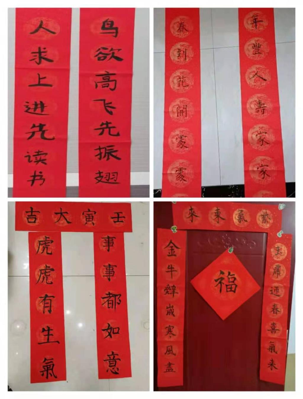 为进一步丰富文传学子的文化生活,弘扬传统优秀文化,享受新春佳节,珍惜团圆时光。文传学院组织同学们开展“春联对对碰”活动,主要围绕“春节”书写对联,展现同学们书法功底的同时,在欢快的节日里共享笔墨魅力。
