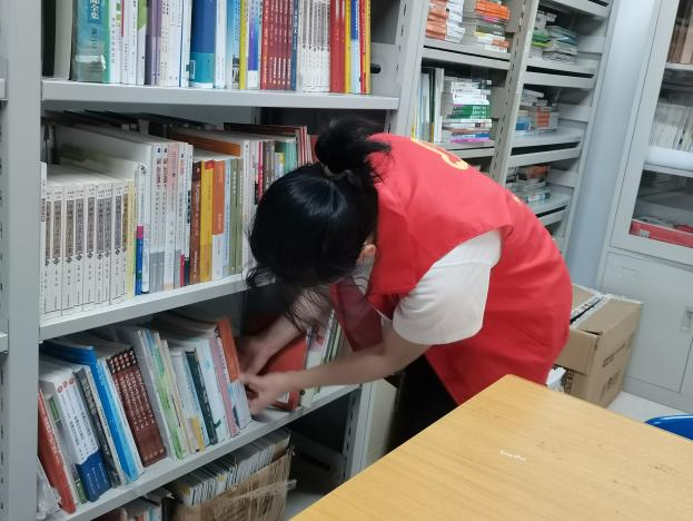参加志愿活动的支部成员先虚心向图书管理老师学习了解图书整理和新书入库方法,接着在小组长的带领下,志愿者开始着手整理图书,他们认真的将书籍按照编号进行分类整理,仔细查阅书刊序号将相应图书返回到书架上。经过志愿者同志们一个小时的整理和归纳,阅览室的图书序列一目了然,为同学们借阅图书提供了便利,也为大家营造了一个良好,整洁的阅读环境。
