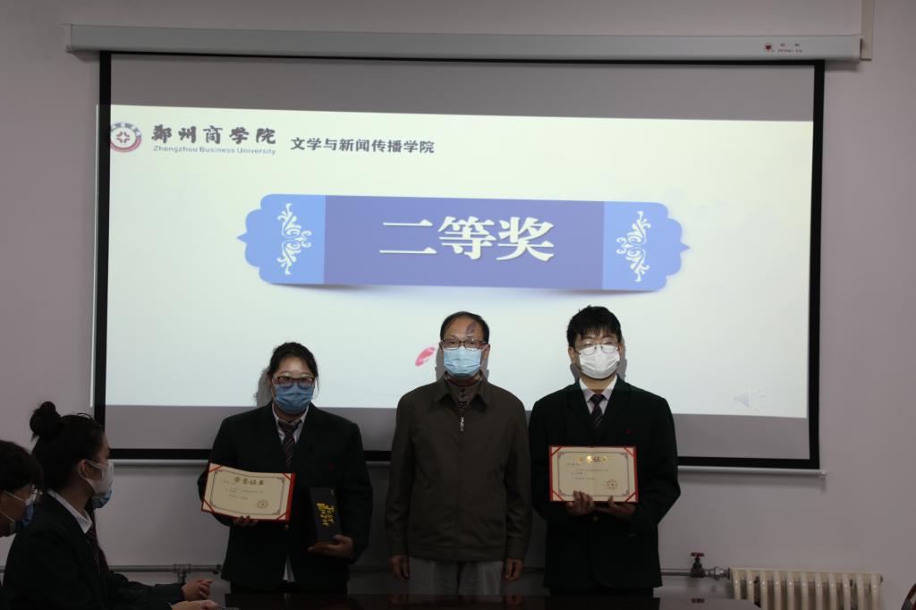 文学教研室主任贾海涛老师为获得优秀奖的同学颁奖