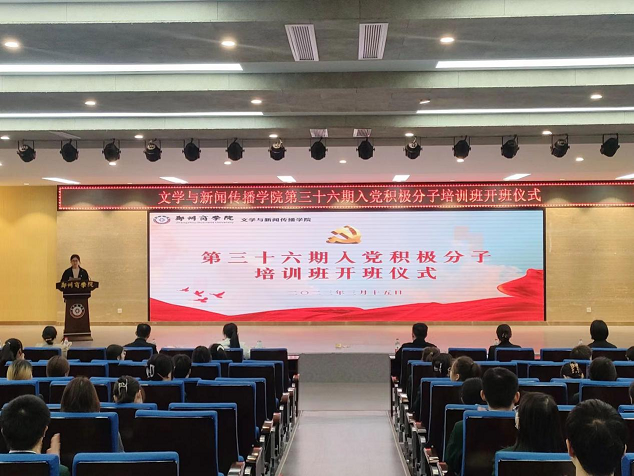 为深入学习贯彻党的二十大精神,加强对入党积极分子的培养教育,文传学院根据校党委工作部署,结合学院党建工作实际,3月15日中午在自力楼三楼报告厅举行“第三十六期入党积极分子培训班开班仪式”我院党委书记贾蓓、团委书记王凯、各学生党支部书记、全体辅导员老师以及第三十六期入党积极分子共同参加开班仪式,会议由程斯佳老师主持。