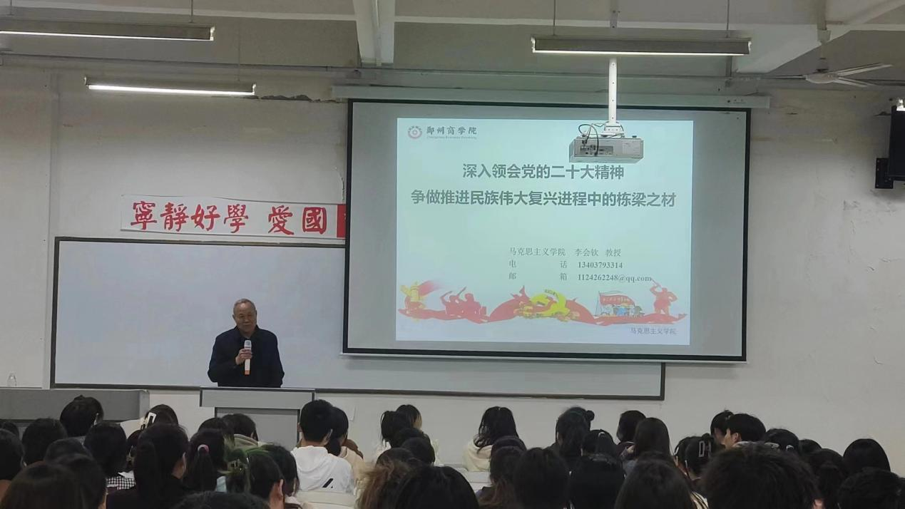 本次党课第一讲由马克思主义学院李会钦教授主讲,他以“深入领会党的二十大精神争做推进民族伟大复兴进程中的栋梁之材”为主题,主要从“二十大精神的科学范畴、二十大精神的鲜明特质、二十大精神的丰富内涵、争做推进民族复兴的栋梁之材”四个层面介绍了二十大精神的“五个新特质”,讲述了二十大以来我国的伟大变革和使命及马克思主义中国化时代化新境界。用通俗易懂的语言、生动形象的事例对党的二十大精神进行了详细解读,引领学员们做推进民族伟大复兴进程中的栋梁之材。
