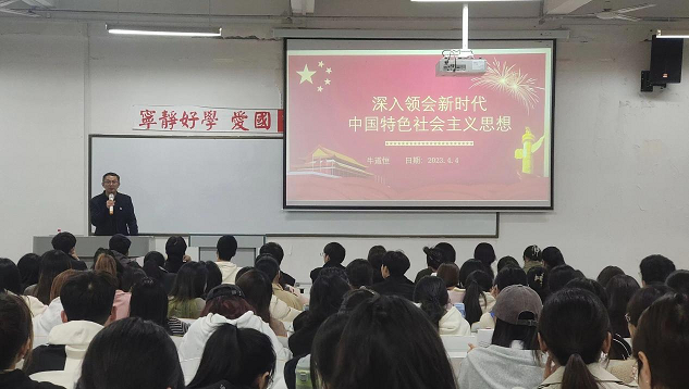 党课第一讲由马克思主义学院李会钦教授主讲,他以“深入领会党的二十大精神 争做推进民族伟大复兴进程中的栋梁之材”为主题,主要从“党的二十大精神的科学范畴、党的二十大精神的鲜明特质、党的二十大精神的丰富内涵、争做推进民族复兴的栋梁之材”四个层面介绍了党的二十大精神的“五个新”特质,讲述了二十大以来我国的伟大变革和新使命及马克思主义中国化时代化新境界。用通俗易懂的语言、生动形象的事例对党的二十大精神进行了深刻诠释和详细解读,引导学员们做推进民族伟大复兴进程中的栋梁之材。
