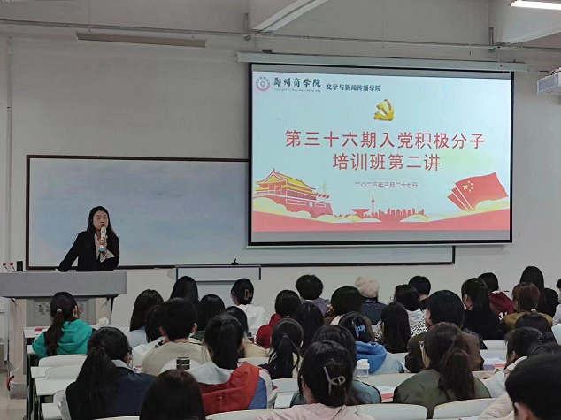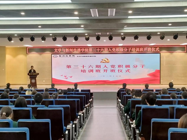 3月15日中午于自力楼三楼报告厅举行“第三十六期入党积极分子培训班开班仪式”。我院党委书记贾蓓、团委书记王凯、各学生党支部书记、全体辅导员老师及第三十六期入党积极分子共同参加开班仪式,会议由党委组织委员程斯佳老师主持。本期培训班共计164名学员参与,其中包含161名学生,3名教师。学院党委书记贾蓓为本次开班仪式致辞。首先,她代表学院党委恭喜学员们加入到入党积极分子的培训班中;其次,她对学员们提出了五点期望和要求:一是要端正态度,明确目标,真正做到学有所得、学有所获、学有所长;二是要抓住学习重点,努力学习理论知识;三是要认真学习党史国史,做到学史明理、学史增信、学史崇德、学史力行;四是要加强党性修养,铭记初心,增强辨别能力;五是要遵守各项管理规定,重视珍惜此次学习机会。最后,贾蓓书记要求大家要珍惜学习机会,遵守培训纪律,在培训课中提升自己的党性修养,将培训内容内化于心、外化于行,真正做到时时处处起模范带头作用,争取早日成为合格的共产党员。