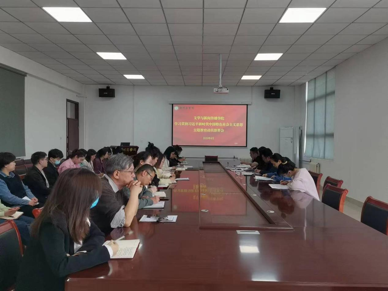 为深入开展学习贯彻习近平新时代中国特色社会主义思想主题教育,4月27日下午,文传学院组织全体教工党员、全体辅导员于自力楼216会议室召开“学习贯彻习近平新时代中国特色社会主义思想主题教育动员部署会”,会议由党委书记贾蓓主持。
