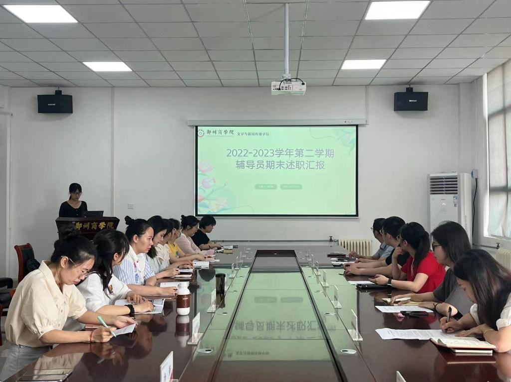 为切实加强我院辅导员队伍建设,激励和促进辅导员不断提升政治素养和业务水平,凝练工作特色,6月26日,文传学院召开2022-2023学年第二学期辅导员期末述职汇报会,文传学院党委书记贾蓓、团委书记王凯以及全体辅导员参加。