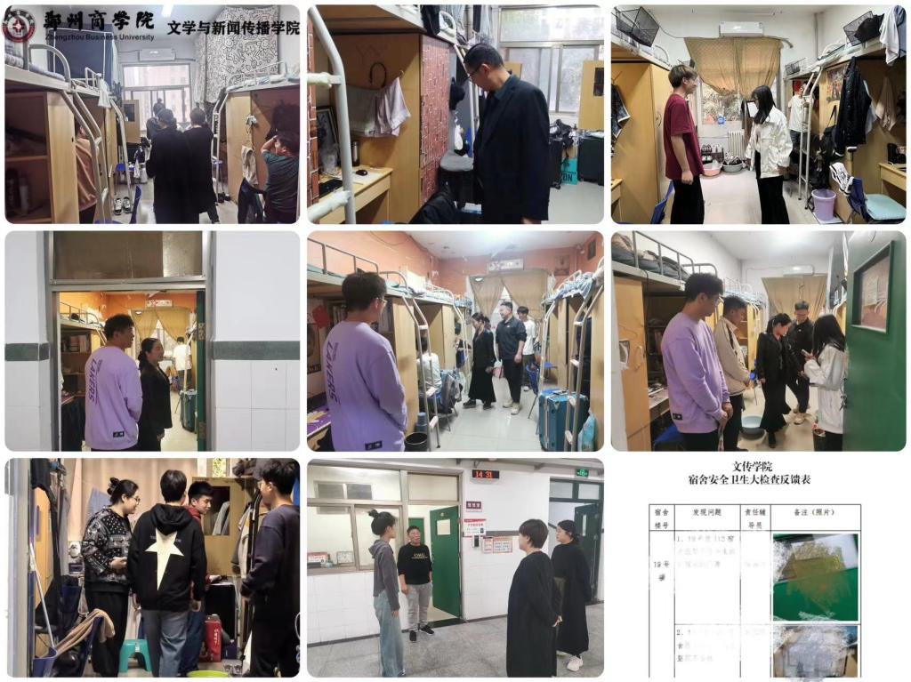 在检查过程中,贾蓓书记就15、19号宿舍楼出现的问题提出整改要求。同时,在走访学生宿舍的过程中,与学生进行了亲切的交流,提醒学生要严格遵守学校的各项管理规定,落实好宿舍卫生、宿舍禁烟、文明规范、用电安全等要求。辅导员在检查过程中全程记录违规情况和宿舍内务整理较好的情况,将检查结果通过《文传学院宿舍安全卫生大检查反馈表》进行汇总反馈,并将检查信息通过网格化群、班干交流群进行公示,以例促改。